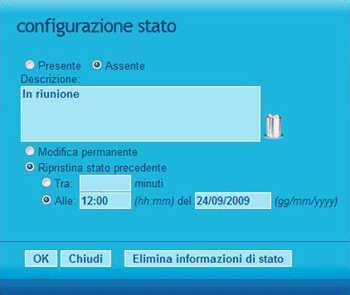 Ogni persona della vostra azienda potrà comunicare la propria disponibilità a ricevere chiamate accedendo all'apposito pannello Web in modo che la centralinista ne sia al corrente. (Es. Il Sig. Rossi è assente e rientrerà il giorno 22, oppure il Sig. Bianchi è in riunione fino alle 11:30).